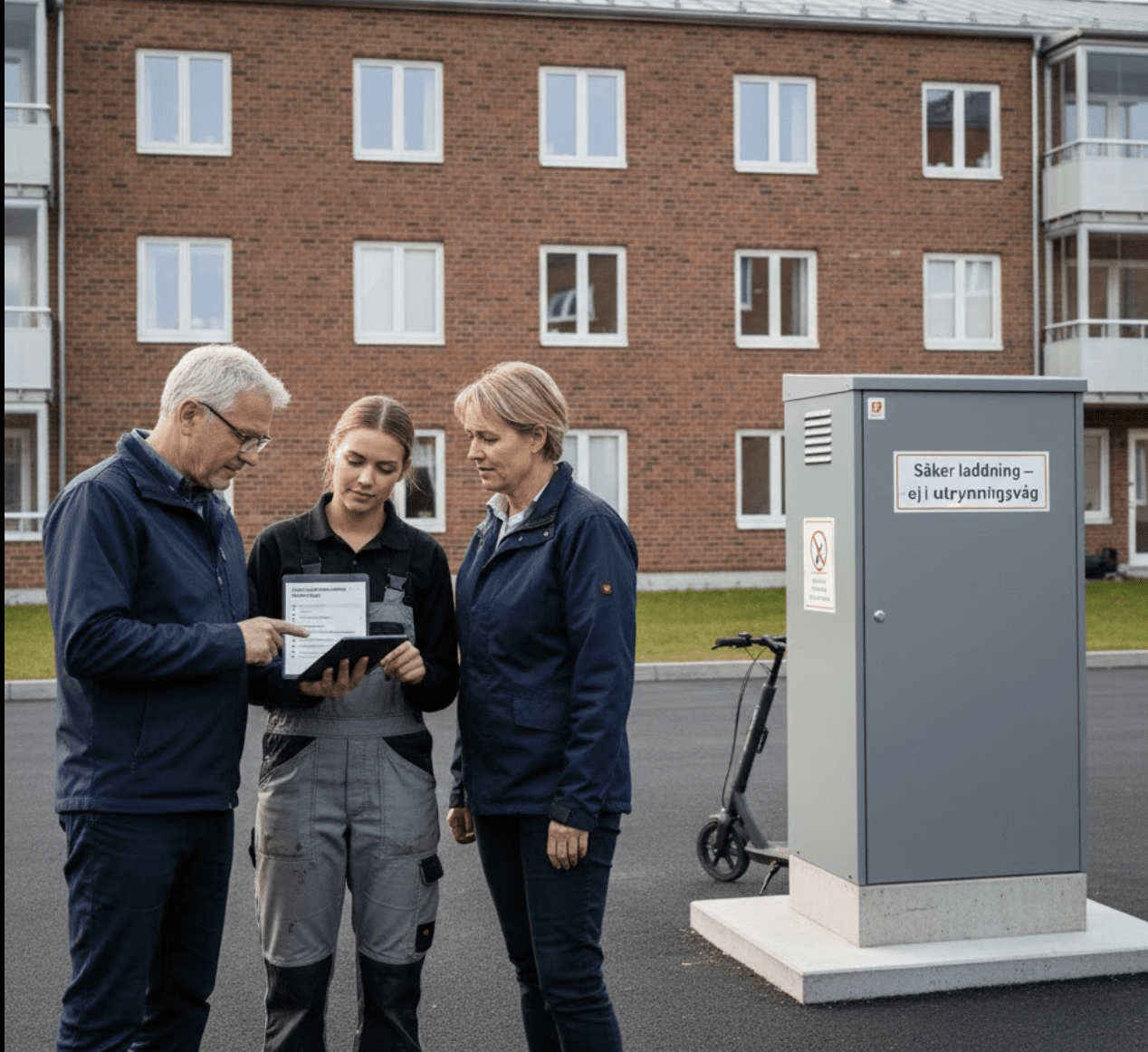 Genom installation av anpassade laddskåp i gemensamma utrymmen och utemiljöer minskar brandrisker, förbättrar säkerheten och skapar trygghet för användare, samtidigt som moderna brandskyddskrav uppfylls.