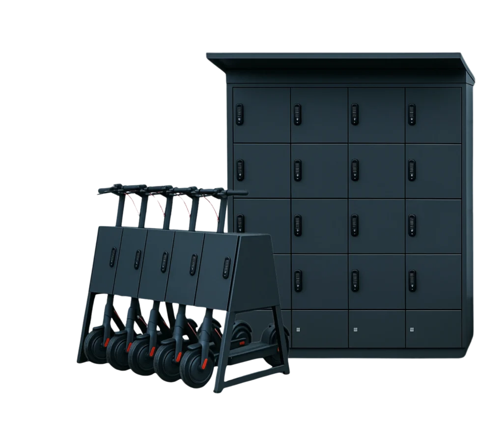 Tillverkade av robust, väderbeständigt stål med UV-resistent lackering för lång hållbarhet. Vi erbjuder flera låsalternativ, såsom cylinderlås, app-lås och PIN-kodslås, för att möta olika säkerhetsbehov och ge användarna trygghet och flexibilitet.